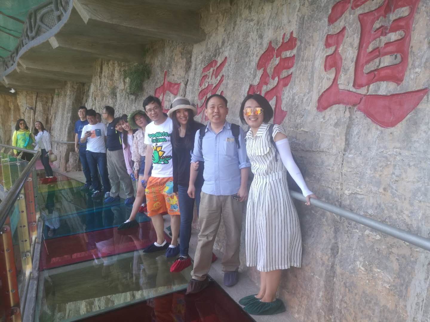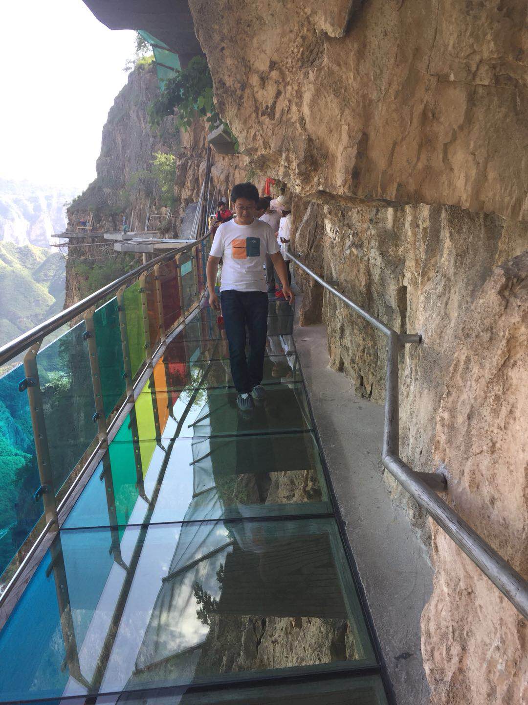 (豐盛的農家菜) 團建活動part 2:挑戰七彩玻璃棧道 吃過午飯,一行人乘車去往東湖港。東湖港的玻璃棧道是七彩的,這是國內首家“七彩玻璃棧道”,挑戰區全長1200米,其中七彩玻璃128米,高差600余米。走在玻璃棧道上,猶如踩著一條長長的彩虹橋,驚險刺激而又不失浪漫夢幻!