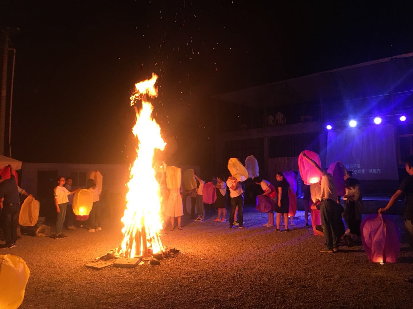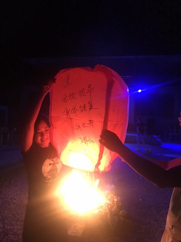 走過驚險刺激的玻璃棧道,回去吃個晚飯壓壓驚。 團建活動part 3:篝火晚會 篝火晚會可是本次團建中“小芯”最期待的環節呢!大家圍坐在農家小院,點燃篝火,伴著美妙的音樂,放飛寫滿自己心愿的孔明燈。