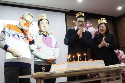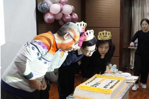 最佳團隊獎(二):臨床部——張軒;屈彬彬;高亞平;楊玲玲 隨后,全場響起了生日祝福歌,主持人邀請百康芯1月份壽星們上臺,各位壽星小伙伴們圍在蛋糕前,雙手合十,許下了她們的新年與生日愿望,百康芯全體小伙伴們為各位獻上了最真誠的祝福。